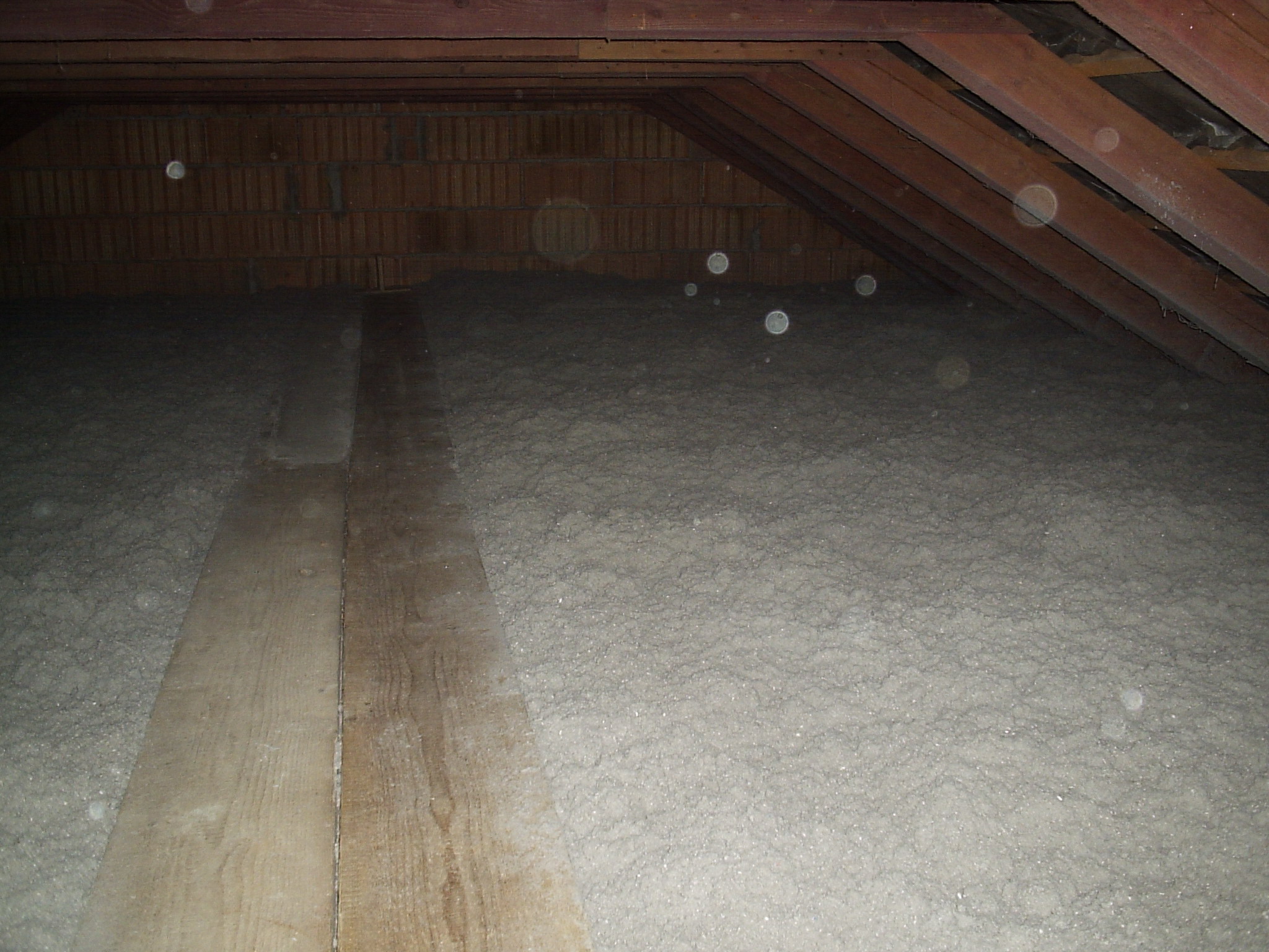 Pfarramt Guntersblum, Dämmung der obersten Geschossdecke, 20 cm offen aufgeblasen.