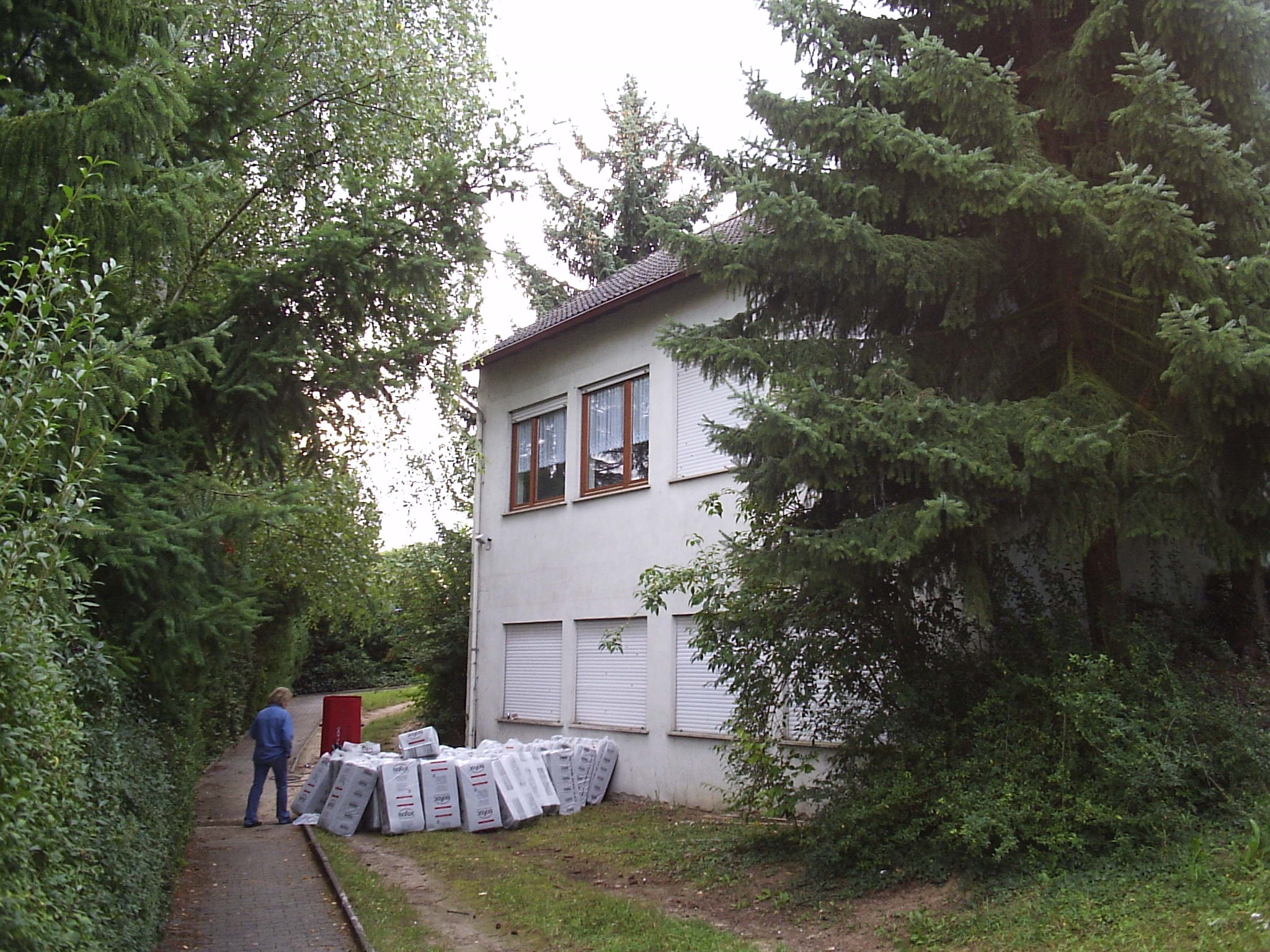 Grundschule 67577 Alsheim, Dachdämmung, von der Außenseite eingebracht.